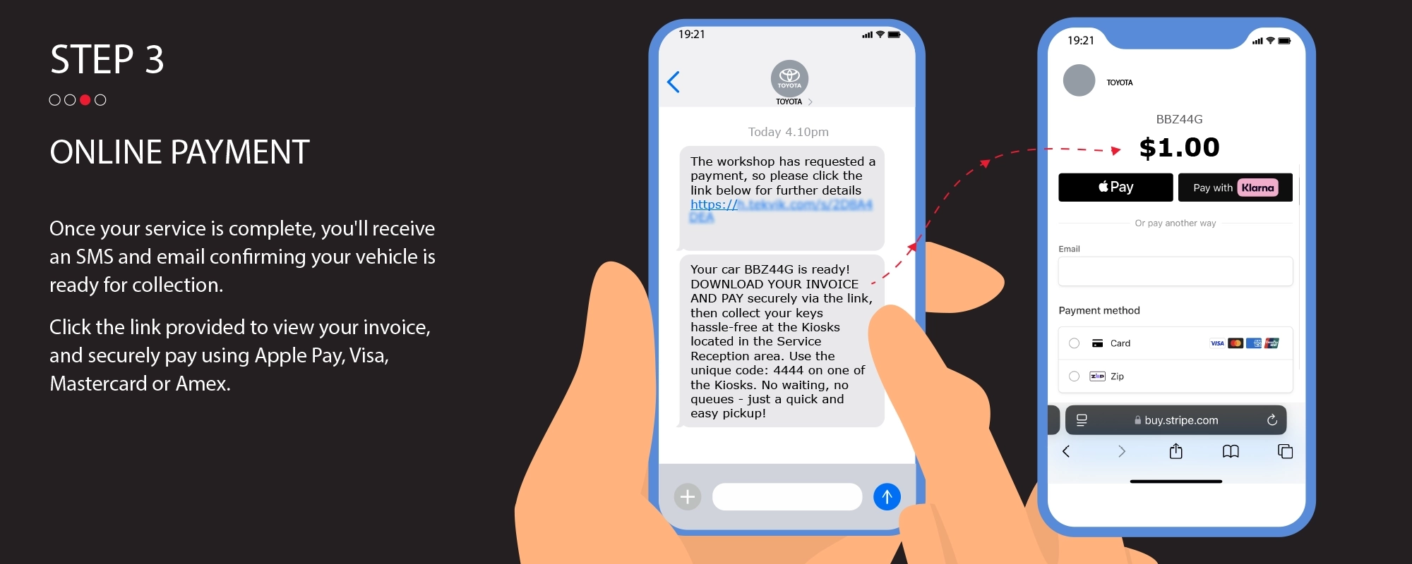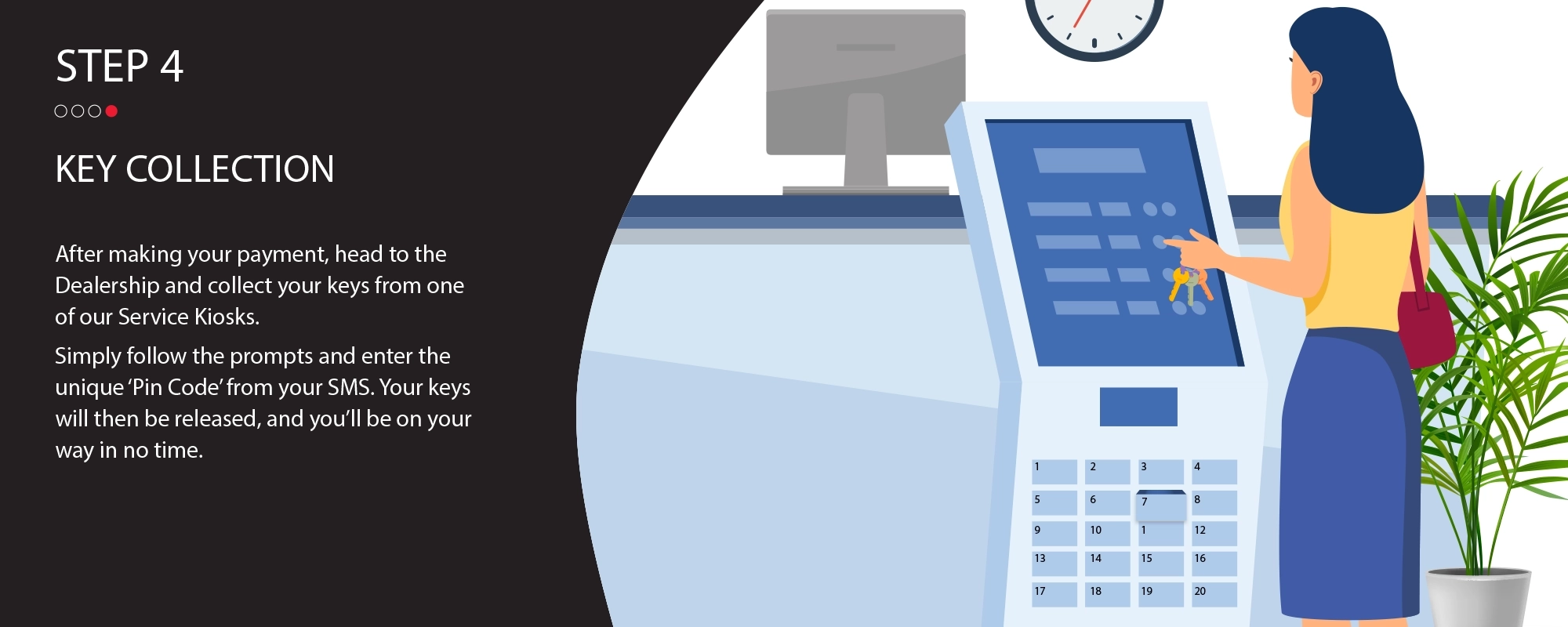 Skip the queue with our Self-Service Kiosk, a completely contact-free way to drop off and collect your Toyota for its next scheduled service.